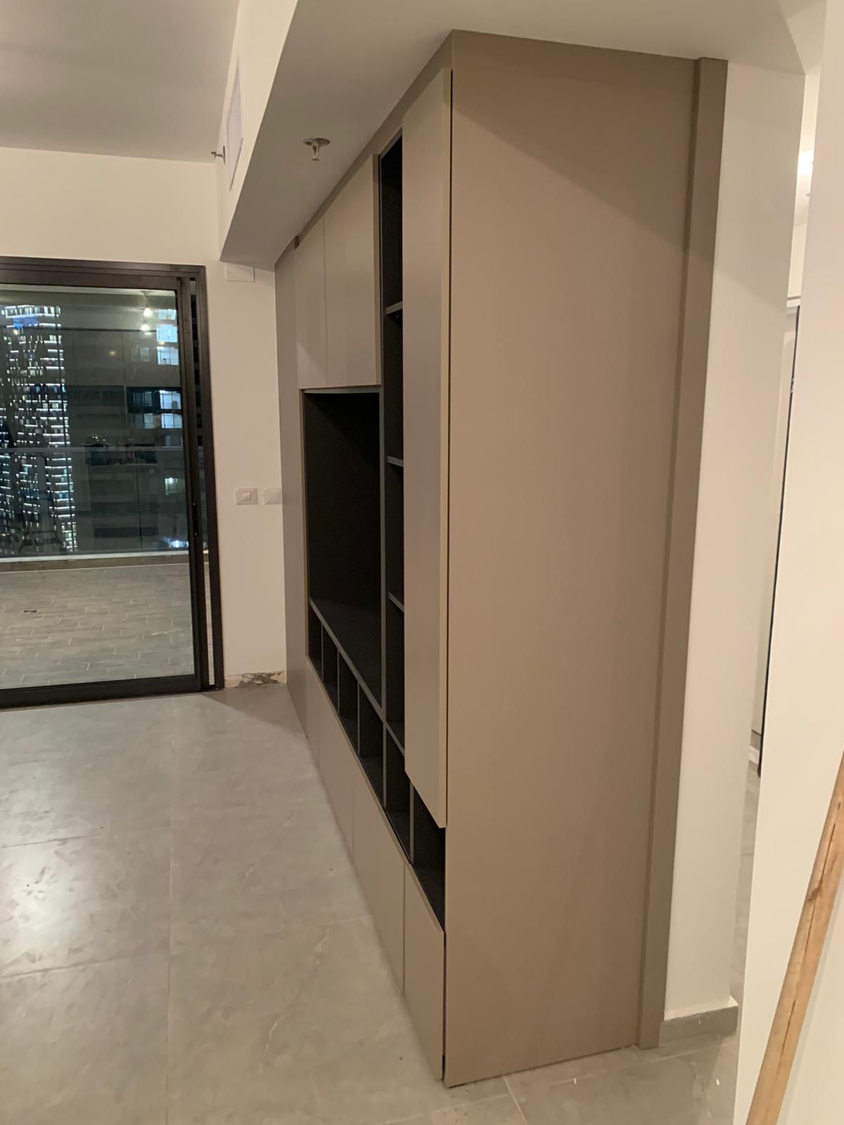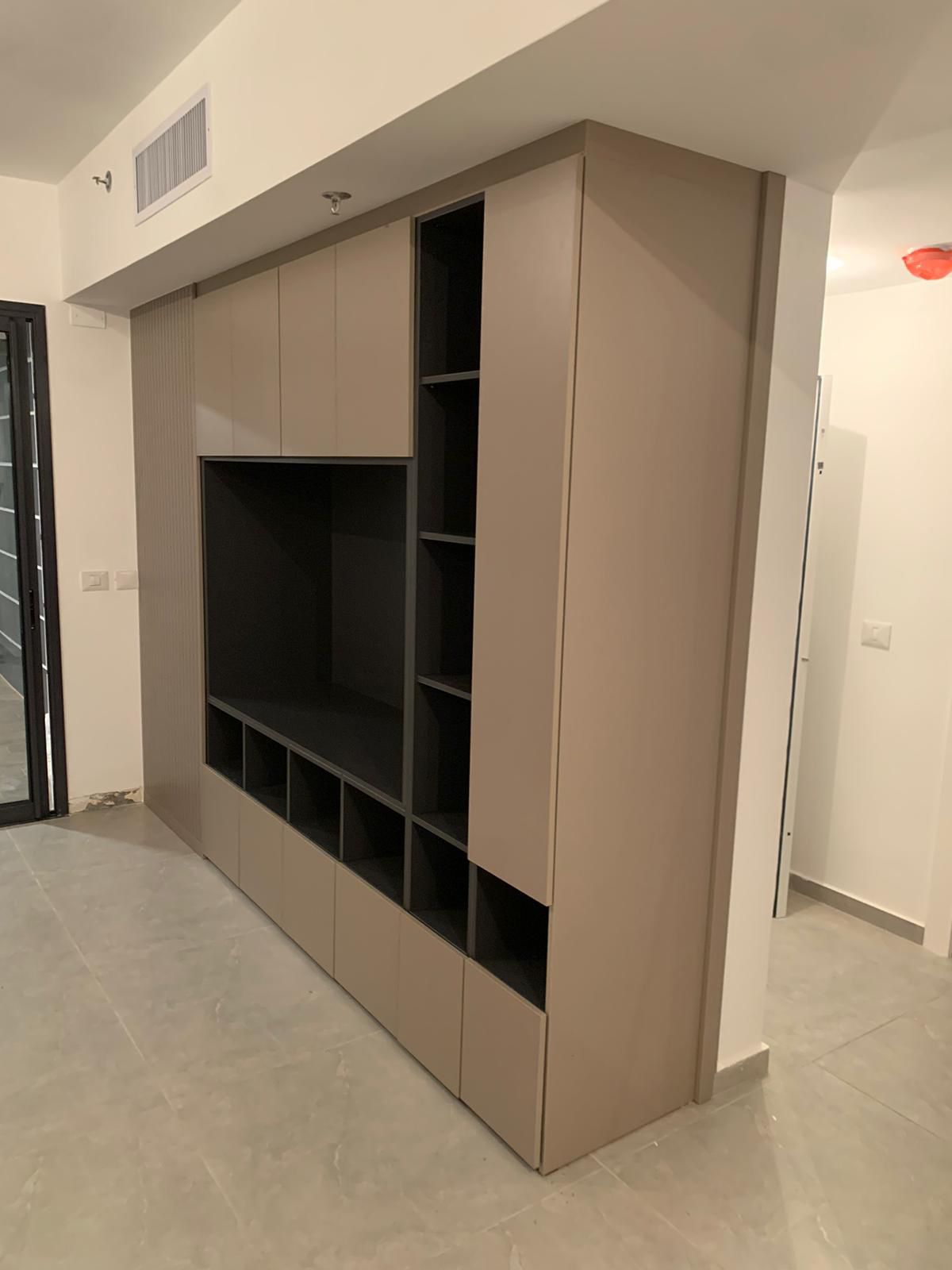 ניצול שטח: גובה הארון מנצל את המרחב עד לקו הנמכת התקרה/מיזוג האוויר.