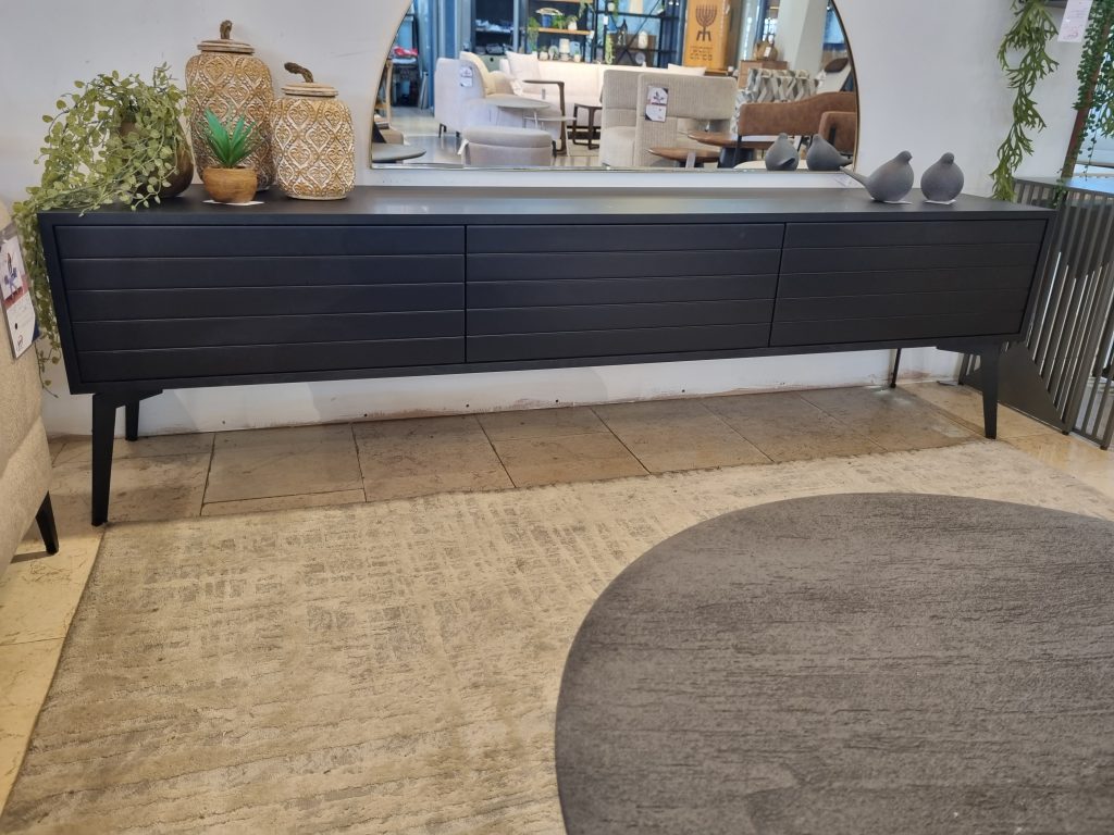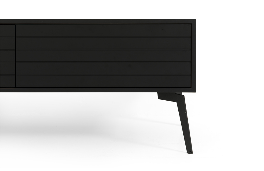 המזנון בעל גוף בגוון שחור, דלתות עם דוגמת פסים בגוון שחור