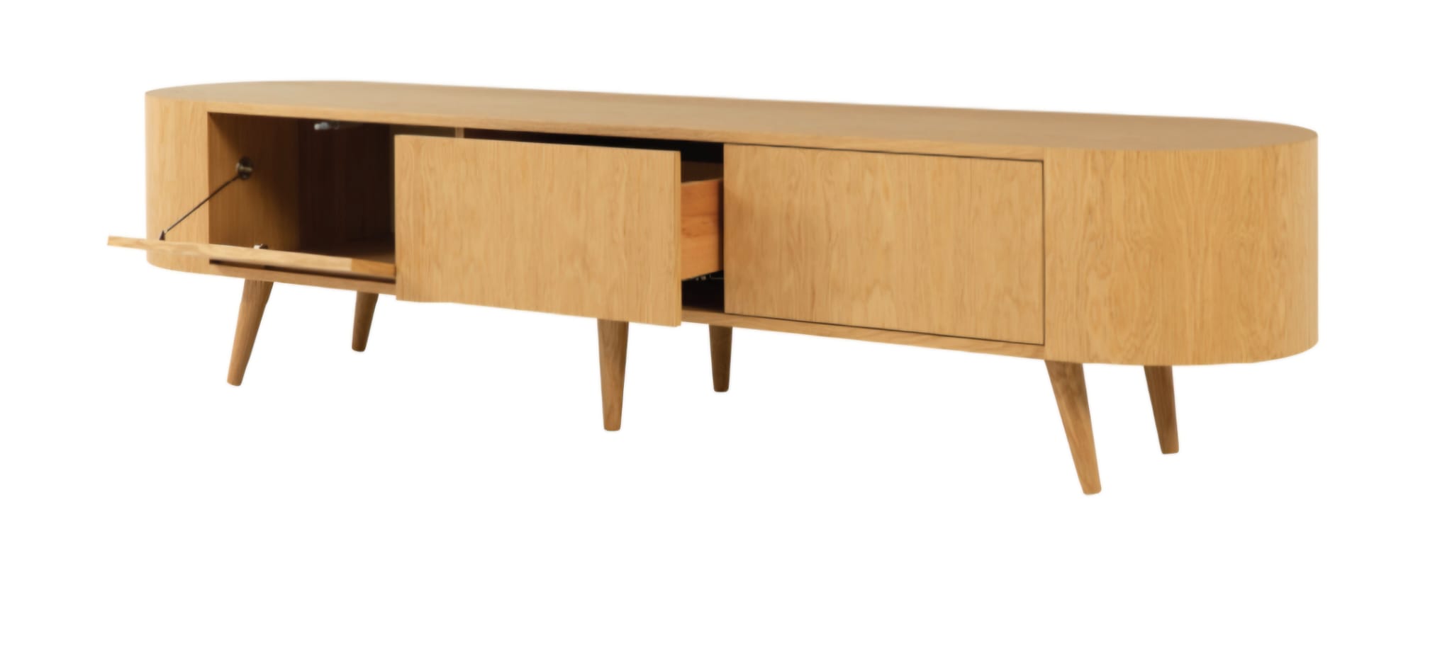 המזנון בעל גוף, דלתות ורגליים בגוון פורניר אלון.
