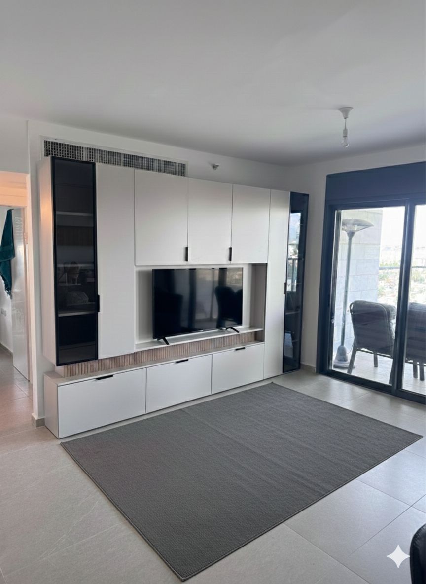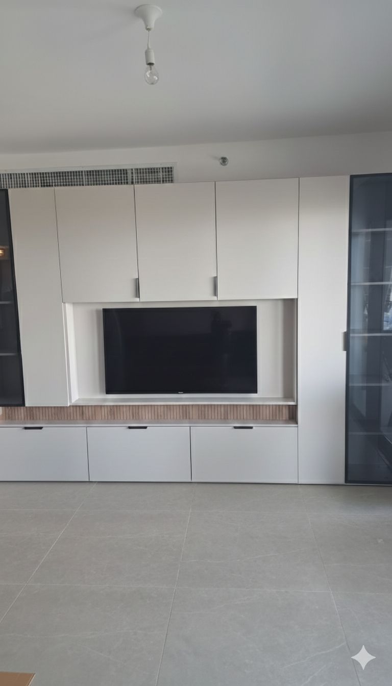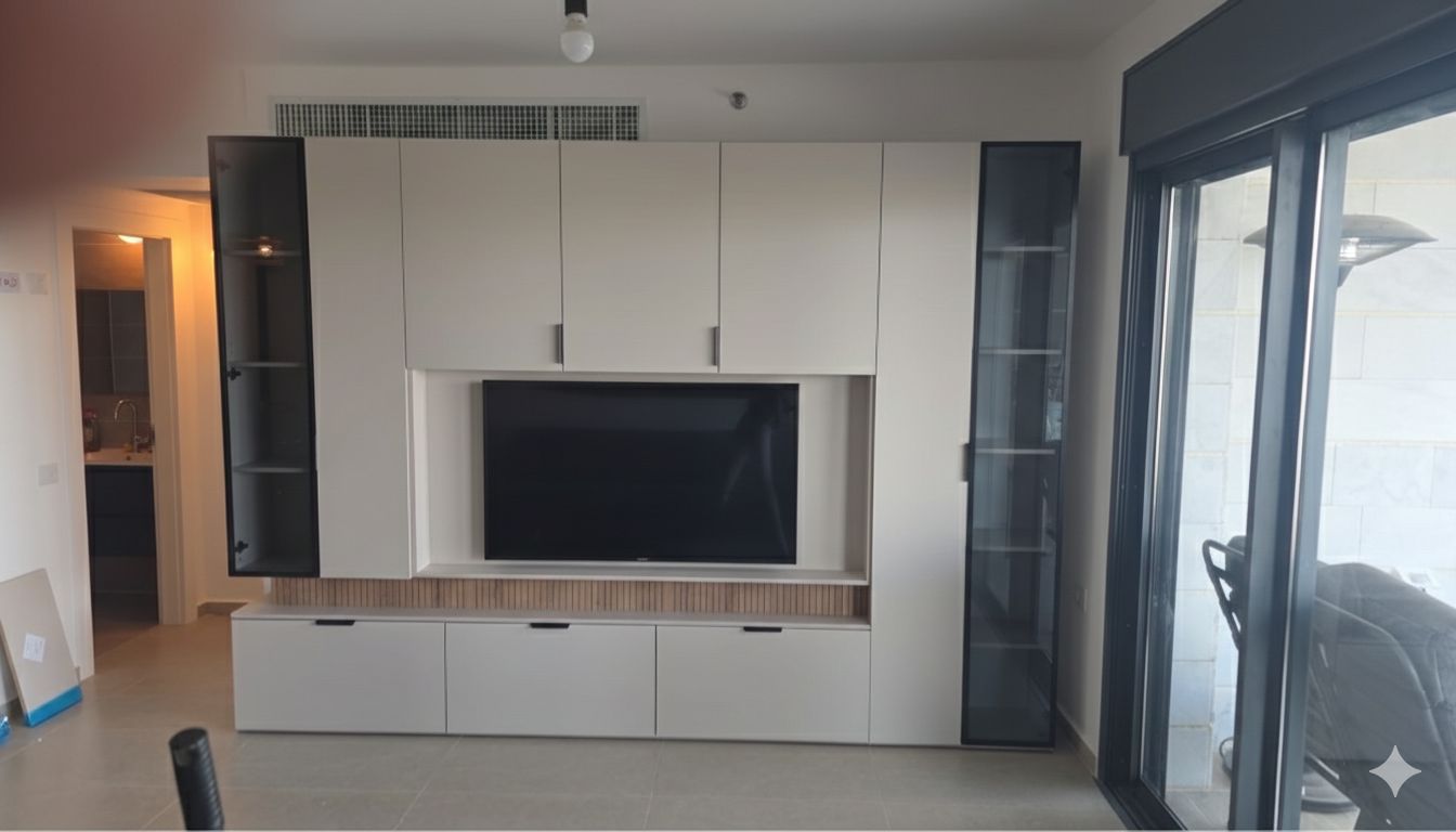 נישת מולטימדיה: מרכז היחידה כולל נישה ייעודית למסך טלוויזיה רחב, עם גב מעוצב המאפשר תלייה נקייה ללא כבלים גלויים.